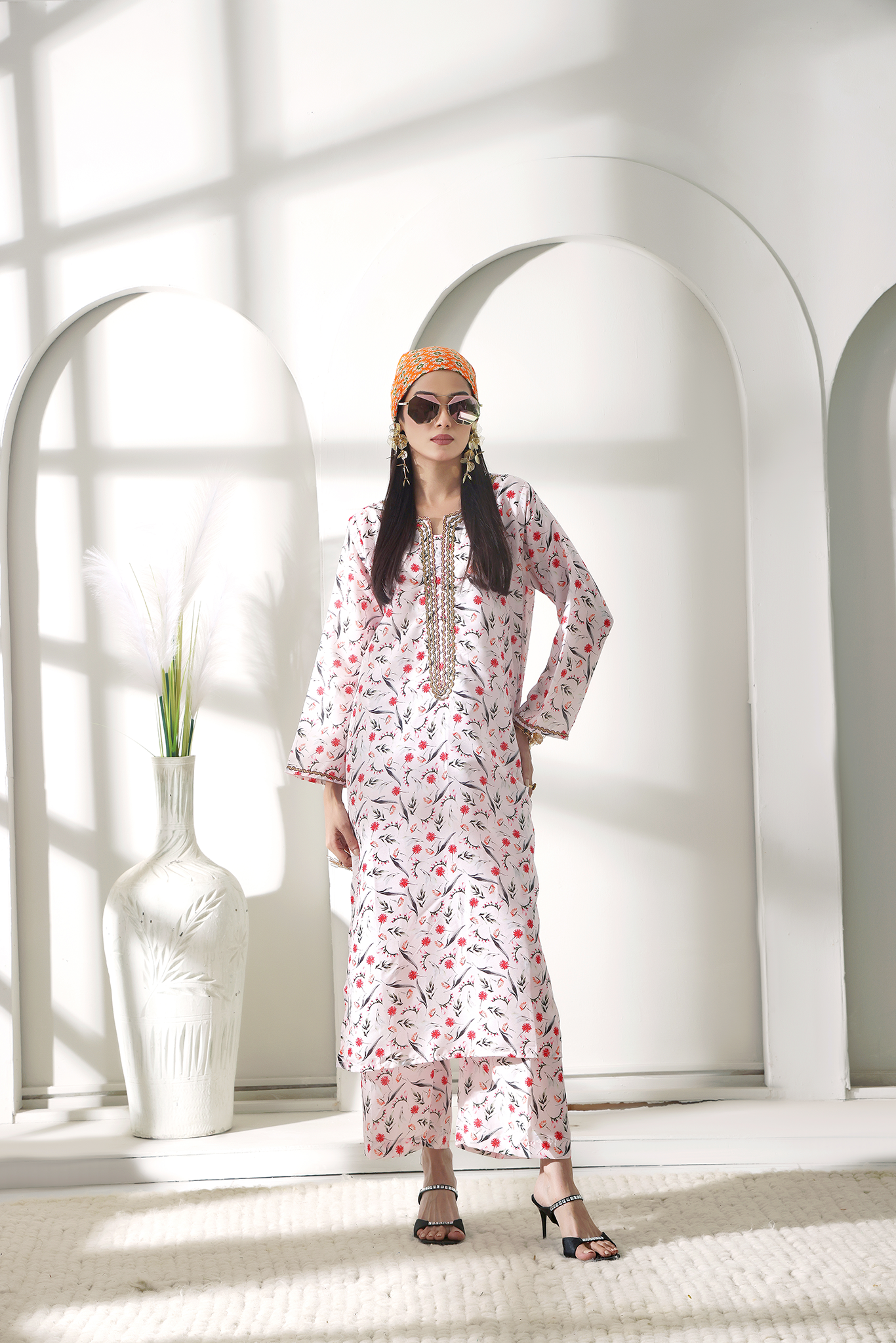 Pastel Powder exudes soft charm and understated elegance. Crafted from premium Swiss cotton in a delicate powder pink hue, this 2-piece outfit features a long printed shirt paired with straight trousers for a graceful silhouette. Lightweight, breathable, and refined, it’s the perfect choice for daytime sophistication, festive gatherings, and elegant casual wear.