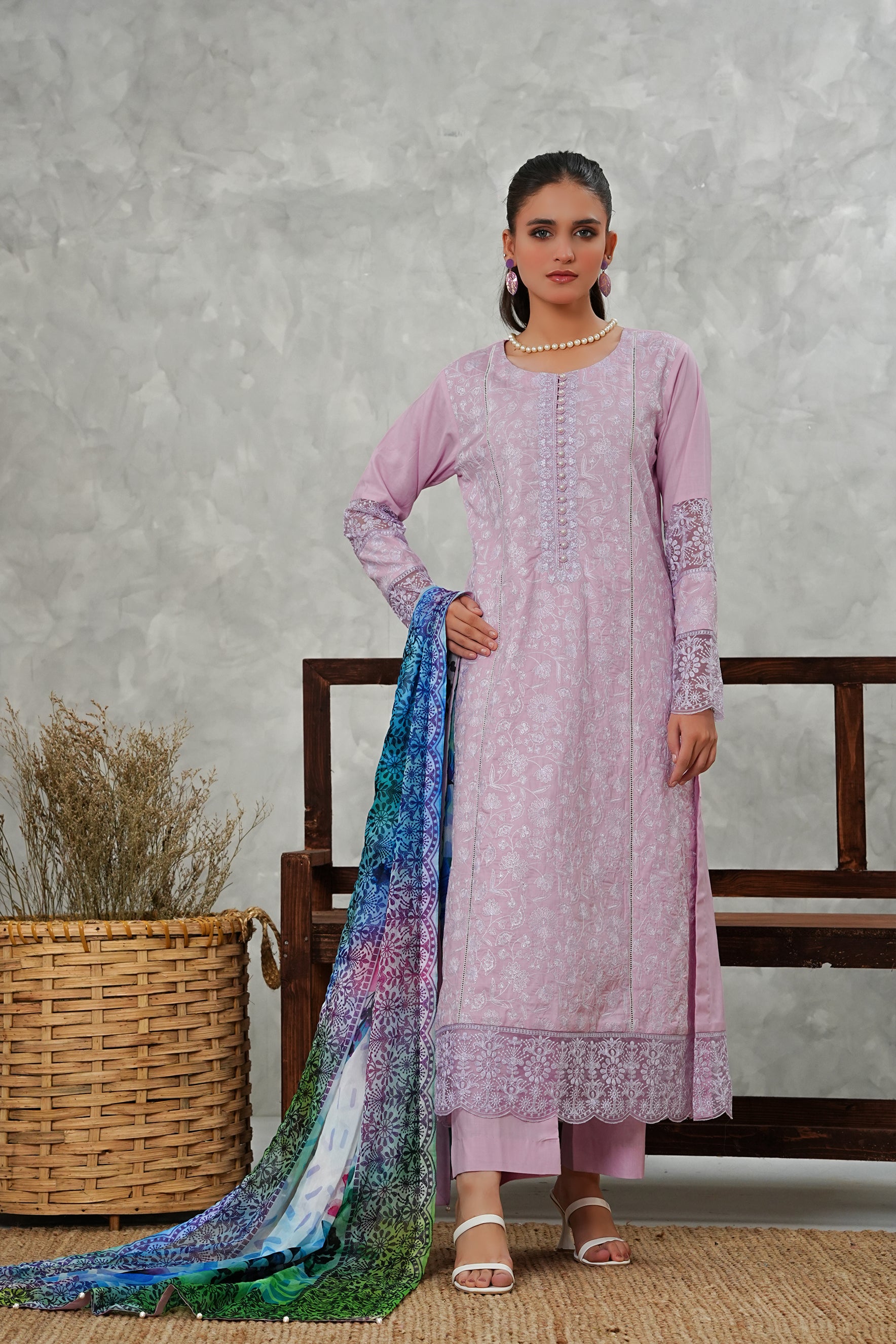 Drift into ethereal beauty with "Seraphic Mist," a captivating ensemble crafted from luxurious lawn fabric. The fully embroidered shirt, adorned with delicate organza patches, creates a sophisticated and intricate design. This enchanting attire is perfectly complemented by a vibrant chiffon printed dupatta, adding a splash of color and elegance to your look. ✨
