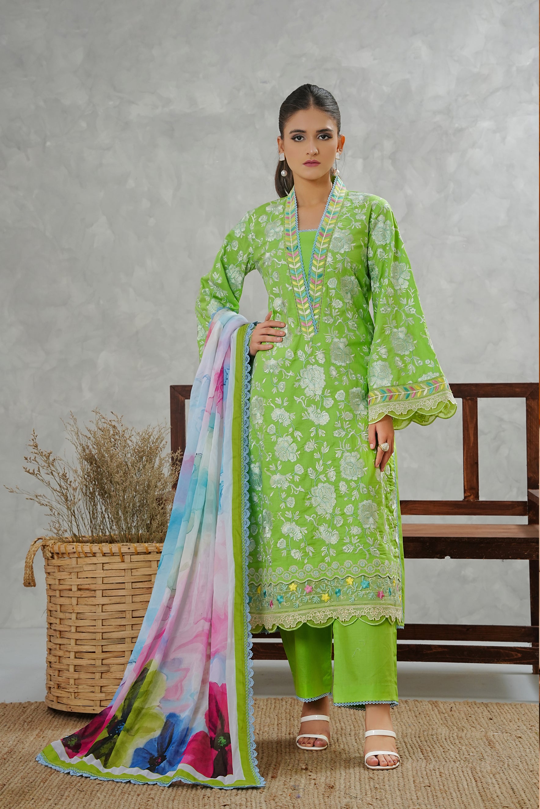 Embrace the beauty of "Spring Serenade," a delightful ensemble featuring a fully embroidered shirt on soft lawn fabric. The intricate details of the shirt are perfectly complemented by a chiffon printed dupatta, enhanced with delicate laces. This outfit captures the essence of spring with its fresh and elegant design, ideal for adding a touch of grace to your wardrobe. π·